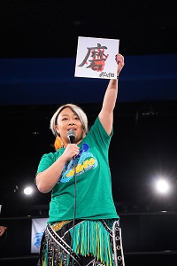 炎華「みなさん、あけましておめでとうございます。本日はご来場ありがとうございます。私の今年の漢字は『明』です。この字には明るい、みんなハッピーにできるようなプロレスラーを目指したいという意味と、目標、進むべき道、やりたいことを課題を明確にした1年にしたくて明るいという字にしました。明るい女になります」
