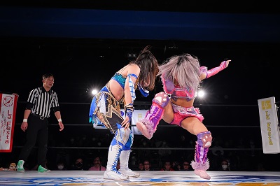 青木「(苦笑いしながら)いったん、所属は置いといて。1月25日アミスタwave3大会ございます。そこでNEXTトーナメントがあり、勝ち上がると2月8日、wave後楽園大会で私に挑戦する権利を得られます。みなさんは1月