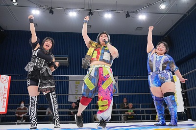 〇柊くるみ&尾﨑妹加&香藤満月(19分29秒、片エビ固め)狐伯●&小林香萌&YuuRI
