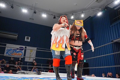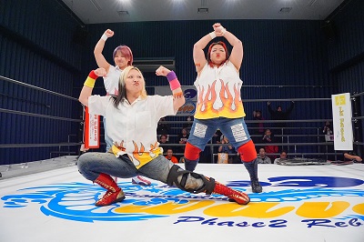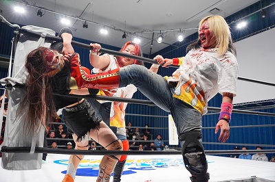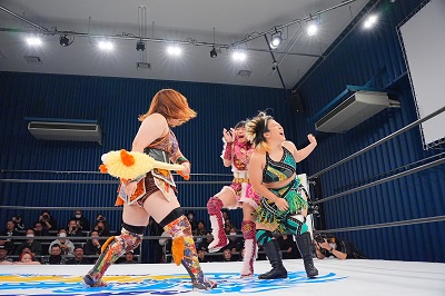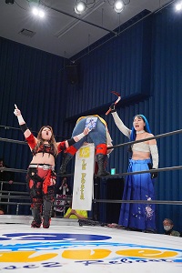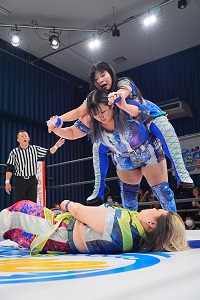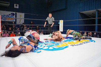 〇宮崎有妃&ハイビスカスみぃ&笹村あやめ(26分53秒、体固め)炎華●&世羅りさ&鈴季すず