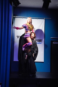 11・2後楽園で新waveタッグ王者となった桜花&咲蘭。改めて、王者としてのコンビネーションを確認し合いたいところ。対戦相手のしのせは咲蘭にとっては、つながりの深い後輩でもある。王者組は桜花の肩に咲蘭が乗る形で登場。すっかりこの姿もファンの間に浸透しているようだ。