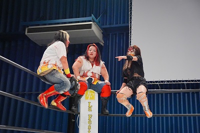 私は狐伯、炎華、咲蘭、waveの若い子、財産だから。狐伯はハードコアできるくらいハート強いけど、私だって、リング上がる前、本当に炎華にできるかなと。炎華にハードコアの攻撃できるかって、私もちょっと不安だったよ。