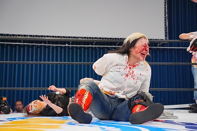 (試合後、宮崎さんのマイクを聞いて)始めてとか関係なしに、こんな血まみれになって全然動けなくて動けなかったんですけど、宮崎さんに言葉を言っていただいて、自分もちょっとはようやくプロレスラーになれてきたのかなってうれしかったです。