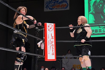⚪伊藤薫&渡辺智子(15分29秒、片エビ固め)紫雷美央⚫&Chi Chi