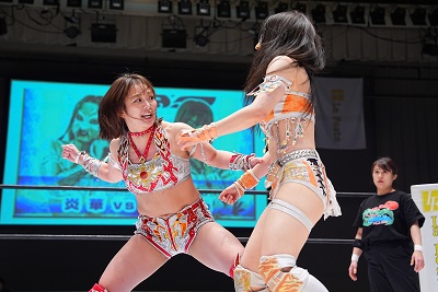 炎華にとって、Sareeeとの試練のシングルマッチ。「気の強さでは負けない」と気合を込めていた炎花だが、その言葉通りとなるか。