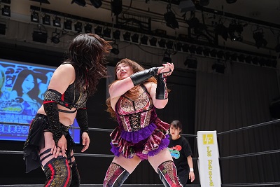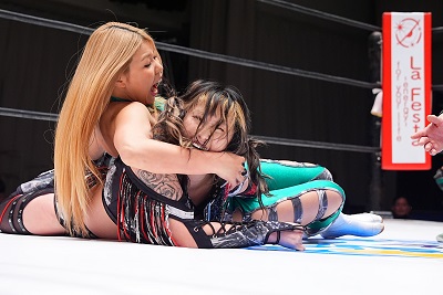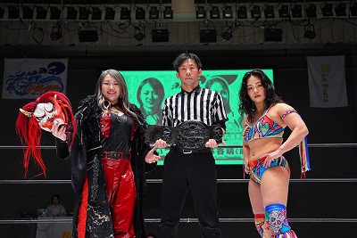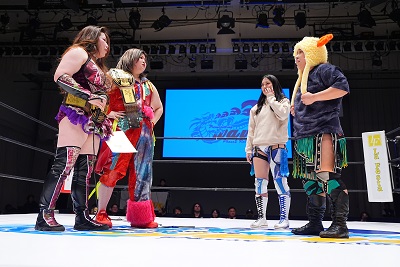 《挑戦者組》⚪夏実もち&柊くるみ(21分42秒、体固め)桜花由美⚫&咲蘭《王者組》
