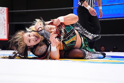 《王者》青木いつ希(19分39秒、ジャパニーズオーシャン・ドロップ・ホールド)小林香萌《挑戦者》