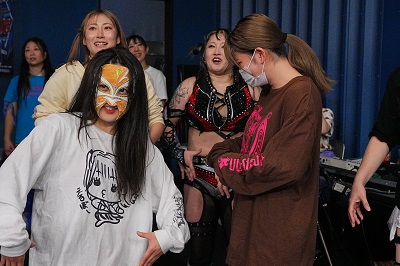 キク「咲蘭、咲蘭とは(最初)小6だったよね、すごく歳の差があったけど、同期として頑張ってきてお互い団体は変わって、咲蘭はwaveさんに行ってからベルトも巻いている、すごく強くなって、まだまだ伸びしろいっぱいあるなって思っています。今日タッグも組んでくれて、シングルもやりたいと言ってくれてありがとう。